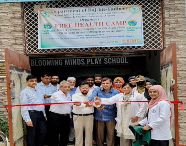 TNN News : The Department of Ilaj bit Tadbeer, Ajmal Khan Tibbiya College, Aligarh Muslim University, organised a Free Health Camp as part of the nationwide “Eat Right Campaign” launched by the Government of India to promote safe, healthy and sustainable eating habits.