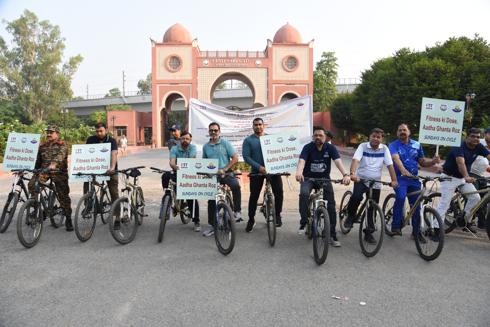 Prof. Nafis Ahmad, in his note, briefly outlined the vision behind the “Sundays on Cycle” initiative soliciting wide participation from the faculty and staff members of JMI. The cyclists rode for about half an hour on pedals under the aegis of the slogan “Fitness ki Dose, Aadha Ghanta Roz” throughout the ride.