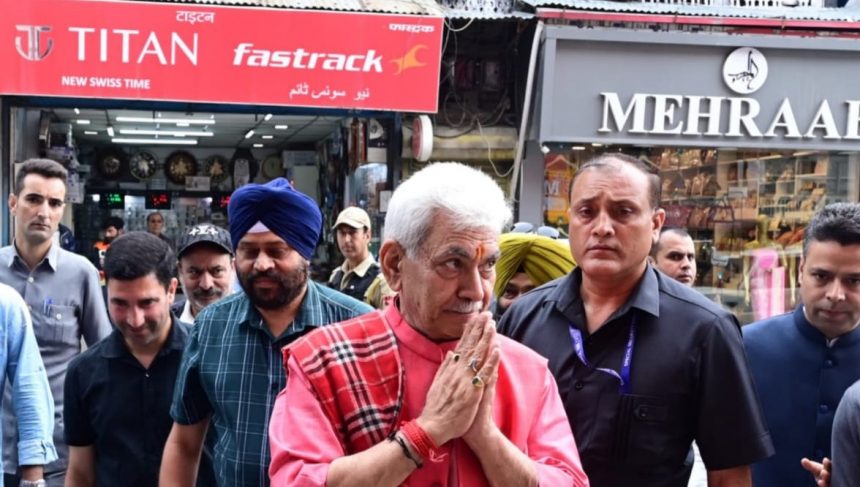 LG Sinha visits Srinagar’s Lal Chowk, interacts with shopkeepers and local traders