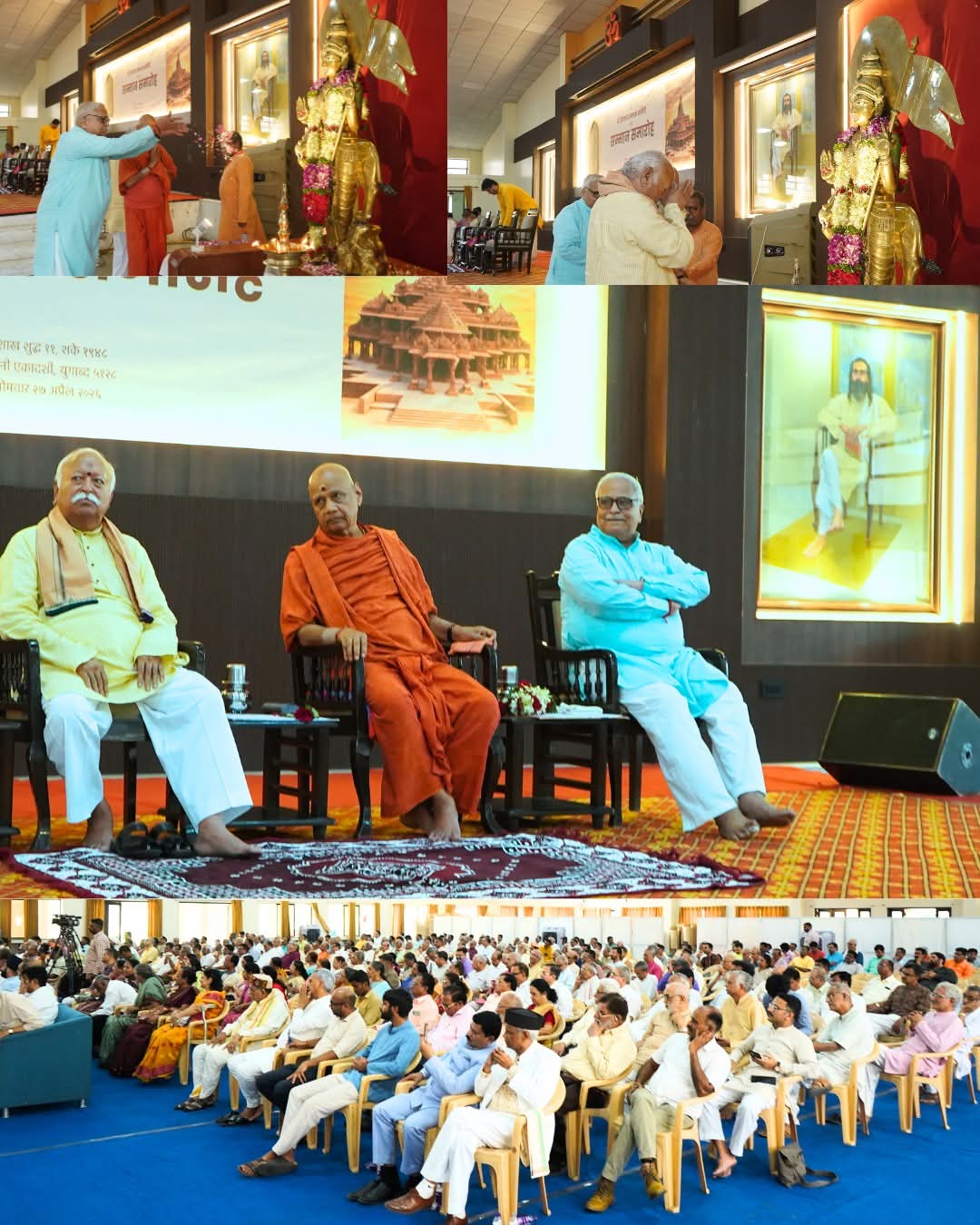 उन्होंने कहा कि मंदिर श्री राम जी की इच्छा से बना, जब तक सबकी लकड़ी नहीं लगती, गोवर्धन नहीं उठता। उनकी करांगुली तब तक काम नहीं करती, जब तक बाकी लोग लकड़ी नहीं लगाते। मंदिर भी ऐसे ही बना। राम मंदिर में भारतवर्ष के एक-एक व्यक्ति की लकड़ी लगी है। अब विश्व को धर्म देने वाला भारत खड़ा होना है। राम मंदिर बनने तक हिन्दुस्तान हिन्दू राष्ट्र है कहने पर हंसने वाले लोग थे। आज हंसने वाले लोग ही कह रहे हैं कि हिन्दुस्तान हिन्दुओं का देश है। हमको कहते है कि आप घोषित करो। हम कहते है घोषित करवाने की जरूरत नहीं, जो है सो है। सूरज पूरब से उगता है, ये घोषित करना चाहिए क्या? वह पूरब से ही उगता है। तो भारत हिन्दू राष्ट्र है, यह आज सबको मान्य है।