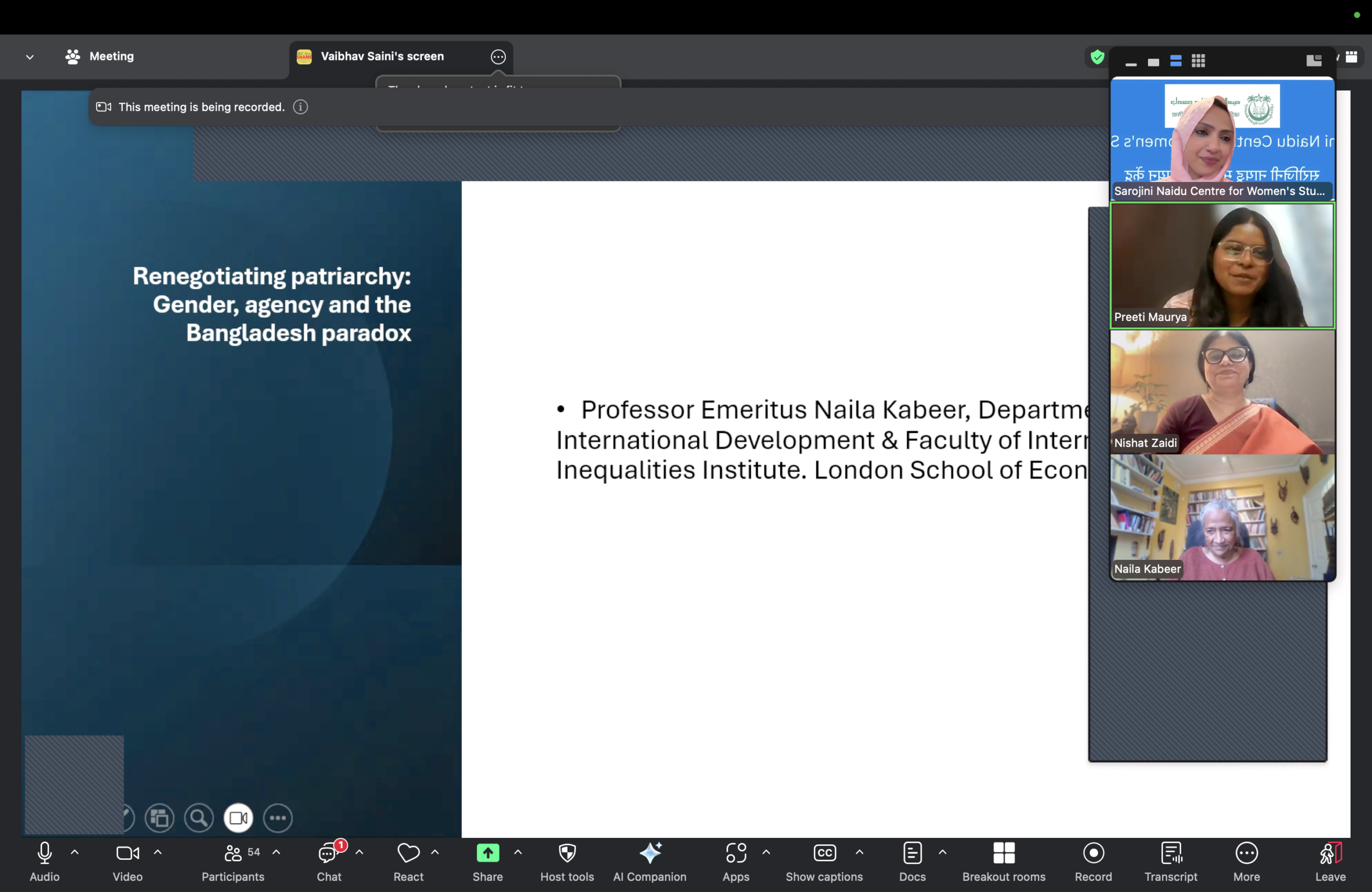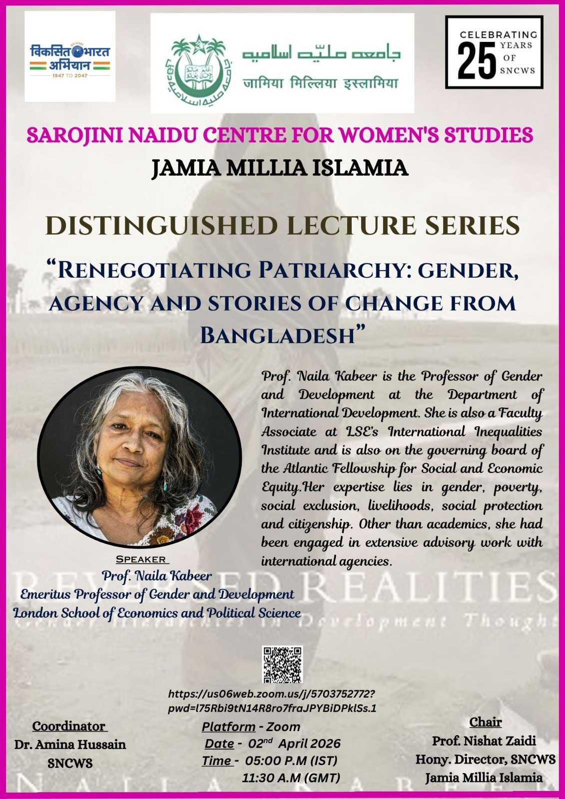 जामिया के सरोजिनी नायडू महिला अध्ययन केंद्र ने LSE प्रोफ़ेसर नाइला कबीर का ‘रिनेगोशिएटिंग पेट्रिआर्की: जेंडर, एजेंसी एंड द बंगलादेश पैराडॉक्स’ विषय पर ऑनलाइन लेक्चर आयोजित किया